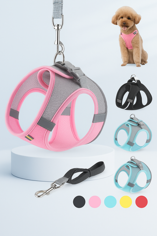 Breathable Pet Harness Set for Dogs and Cats – Adjustable with Leash